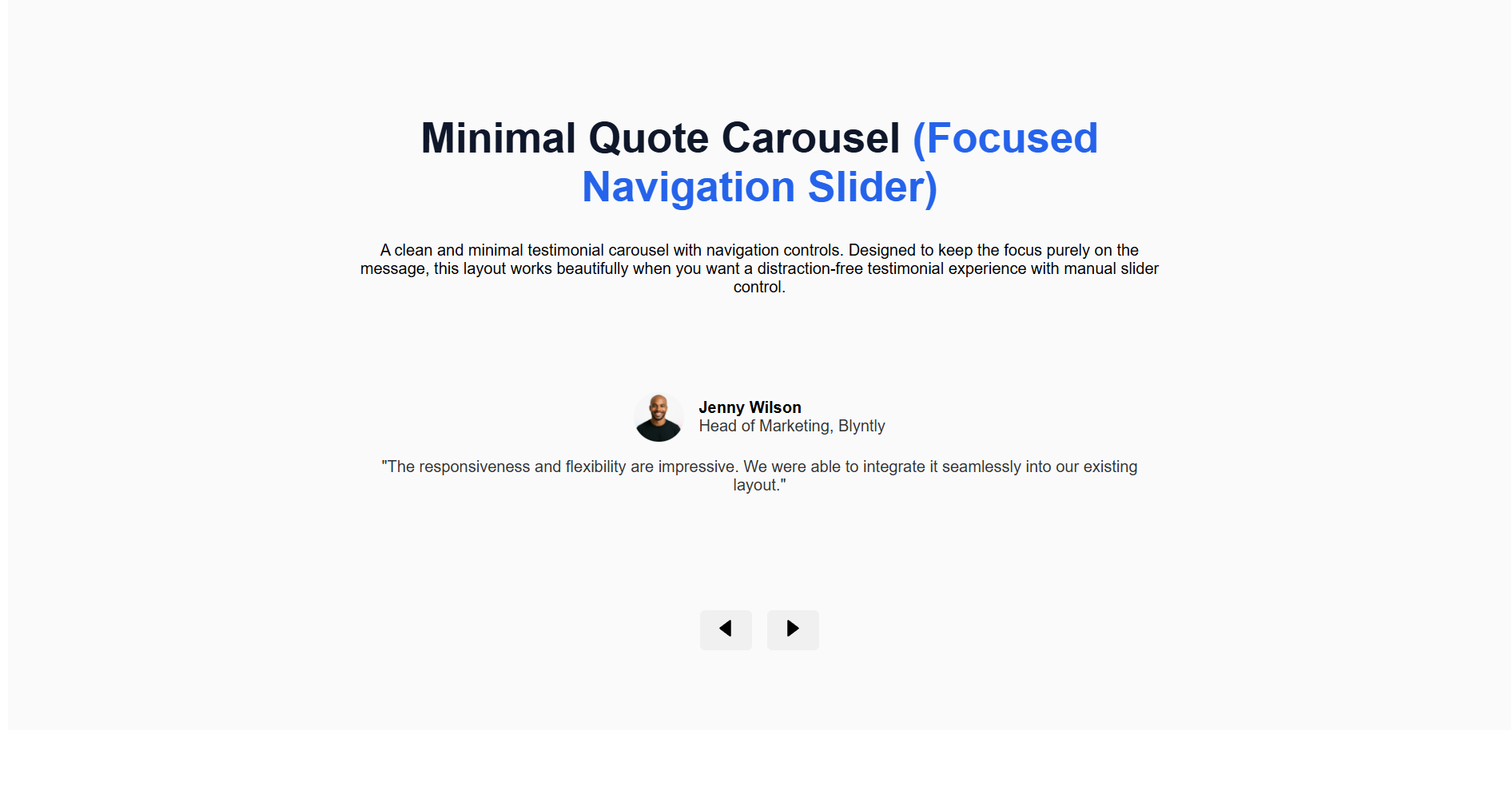 Give your website a clean, modern, and fully responsive testimonial slider that works seamlessly across HTML, WordPress, Shopify, and any platform that allows custom code.